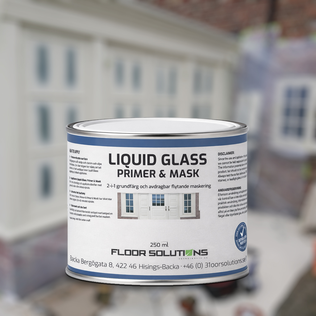 Liquid Glass Primer & Mask grundar trä och maskerar glas i ett moment för snabbare arbete och perfekta färgkanter utan tejp.